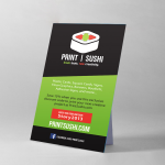 White PVC counter cards are produced on durable 3/16″ PVC with white chipboard easel back and are available in several sizes.